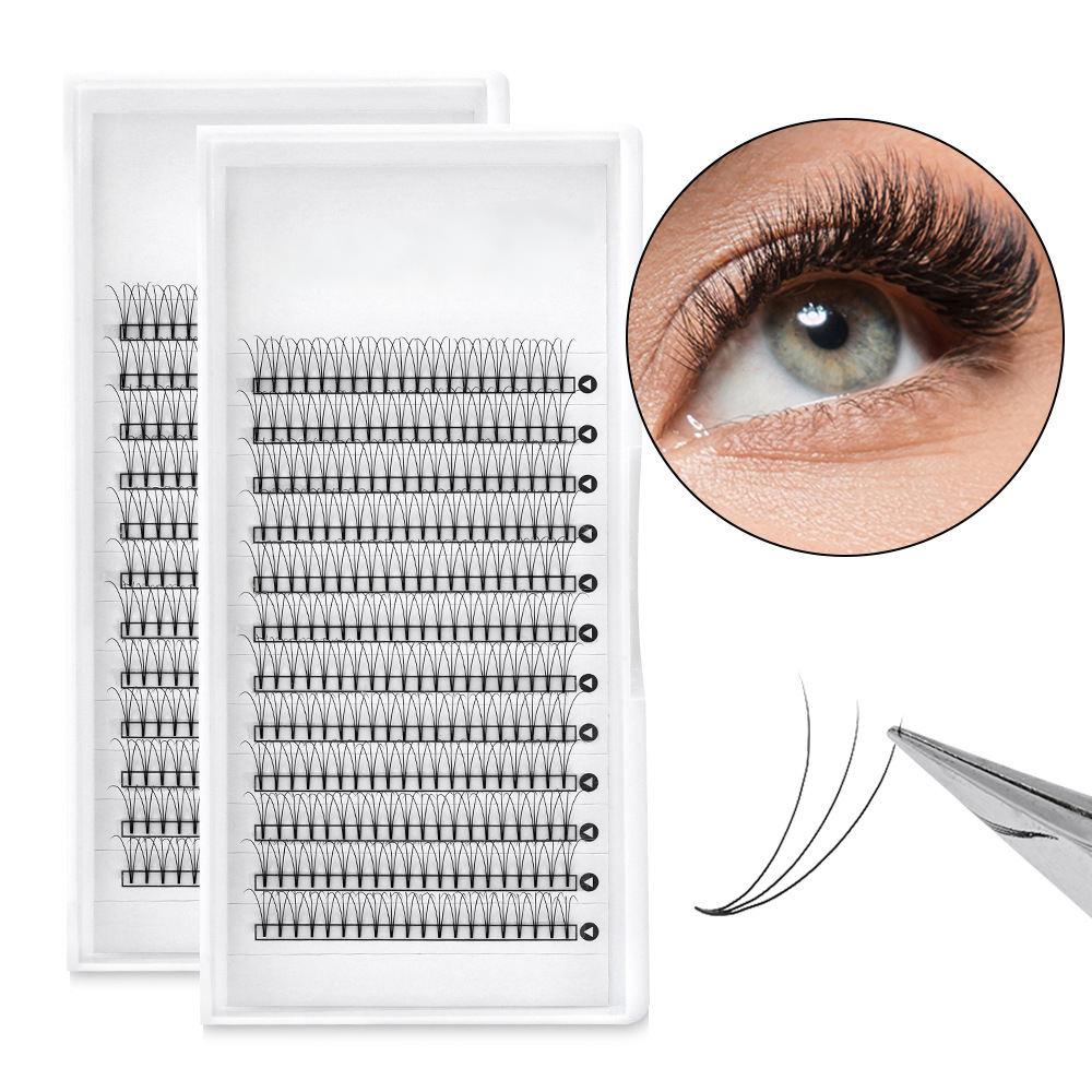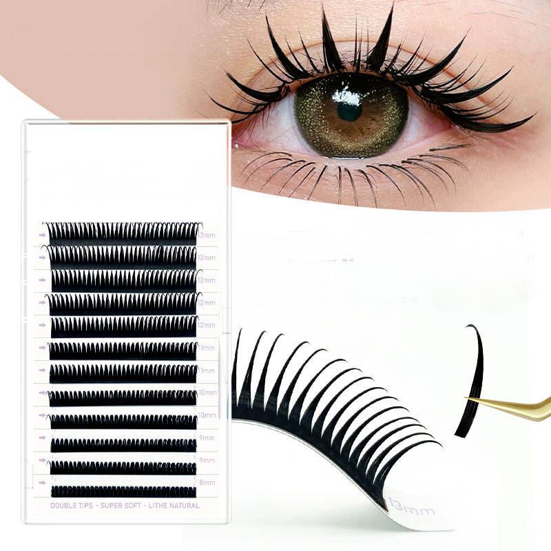 Premade fan lashes are pre-bonded of 2-20 single lashes into perfect fans by lash extension suppliers. This means you don’t need to create your own lash fans during the application process. They make it easier to complete volume eyelash extension sets, similar to how you would apply classic lashes.