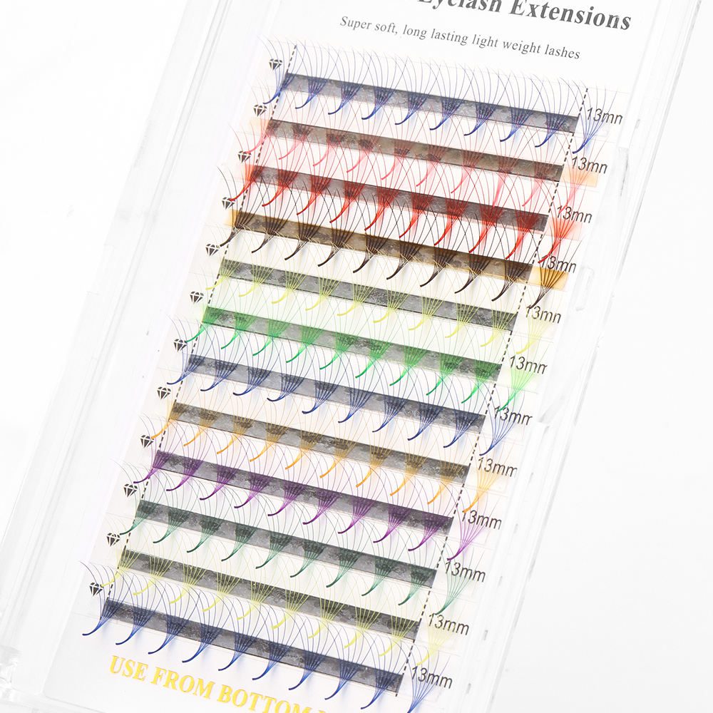 Designed for creating stunning and fluffy lash sets, the mix color premade fans are handmade and heat bonded to a speedy application and light-weight volume finish. Color in green, pink, orange, blue, purple, brown.
