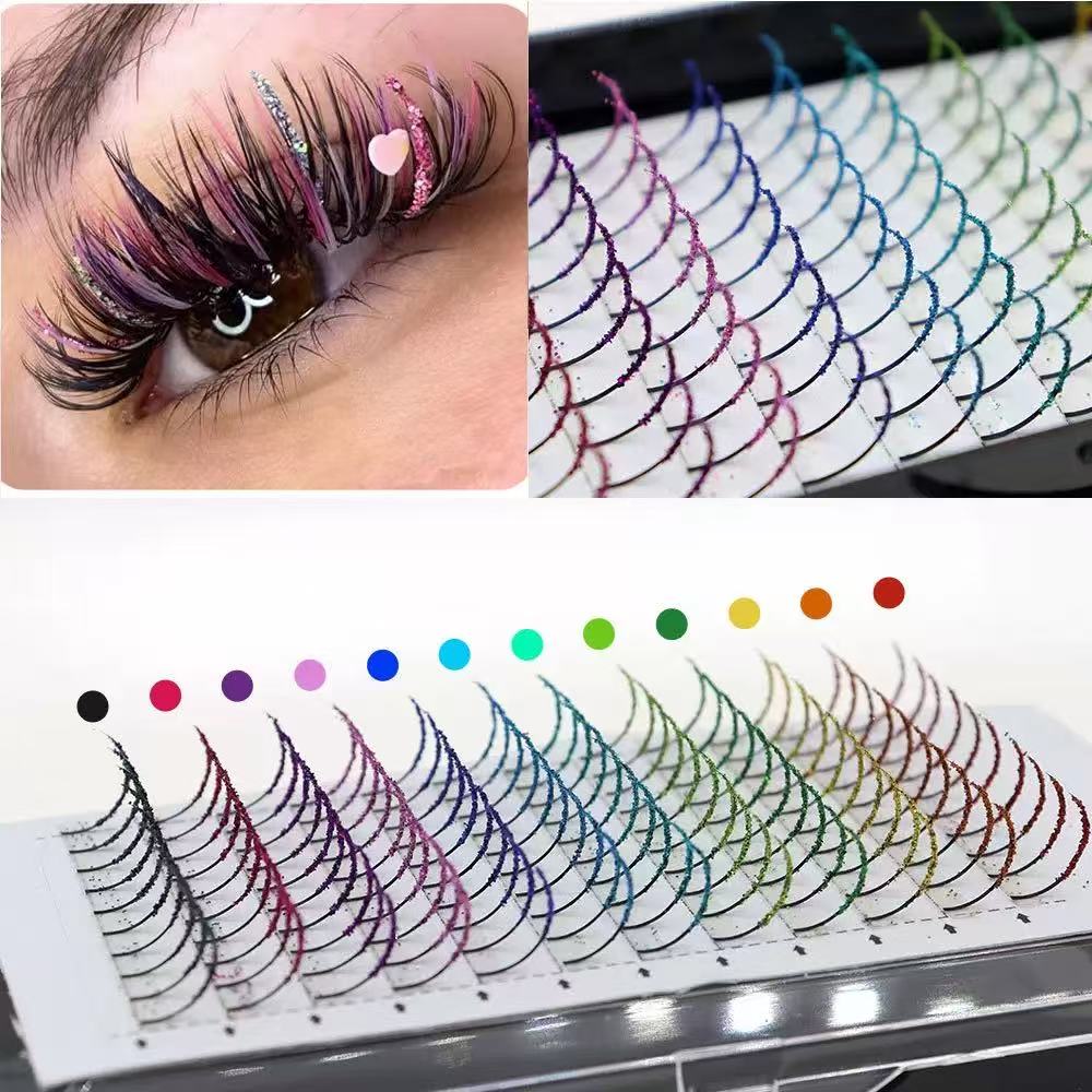 Premade fan glitter spikes is good for adding sparkle and highlight to lash sets. The glitters are pre embeeded into the extensions, they are perfect for festivals, cosplay, party or stage looks.