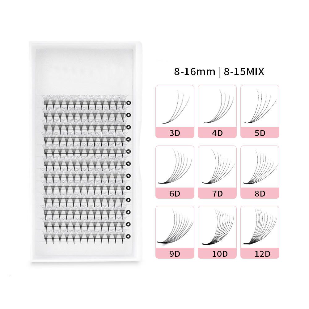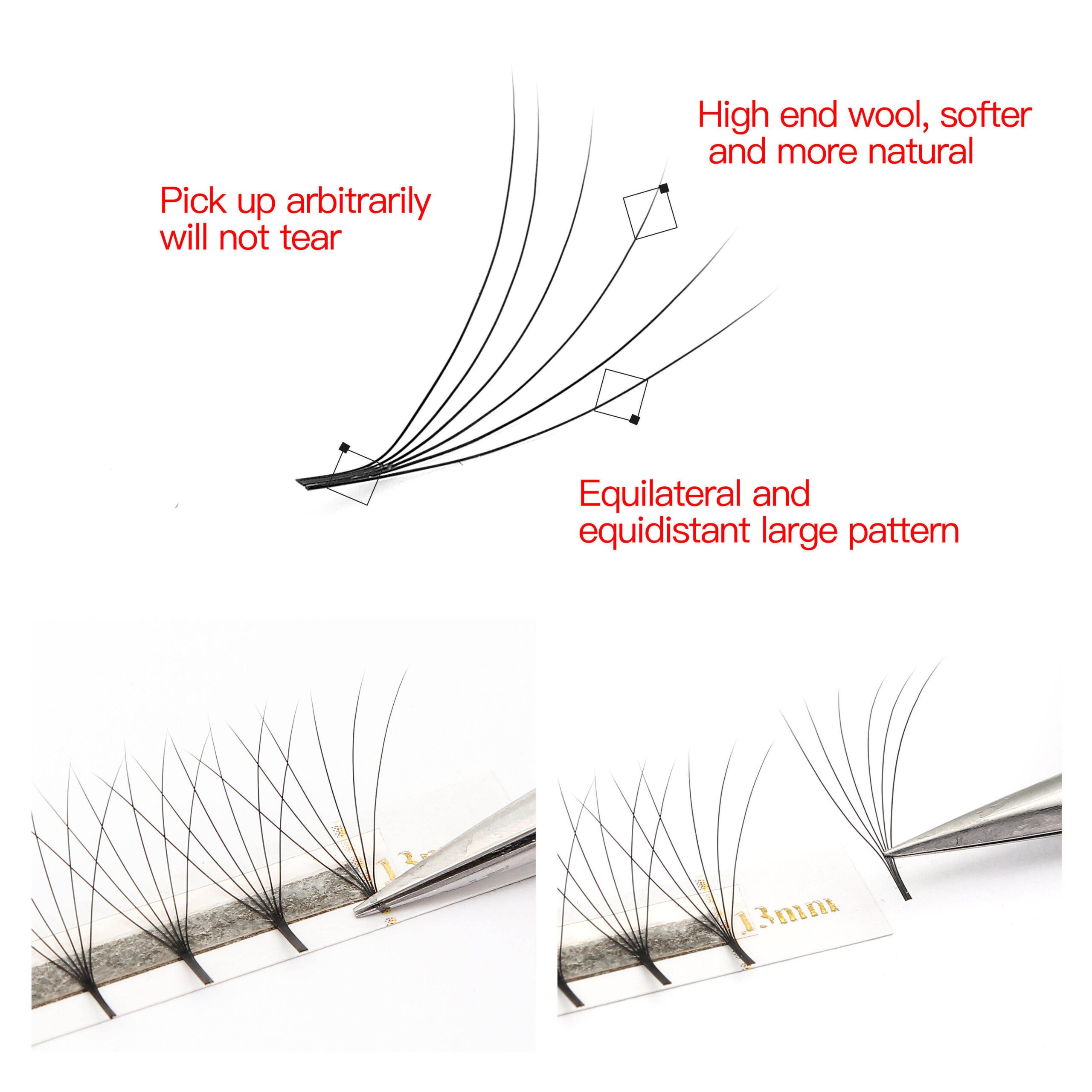 The mix length premade fans can speed up lash volume sets. The base is made in thin to archive a lightweight and textured lash looks. Mix different sizes can make a more voluminous looks in short time.