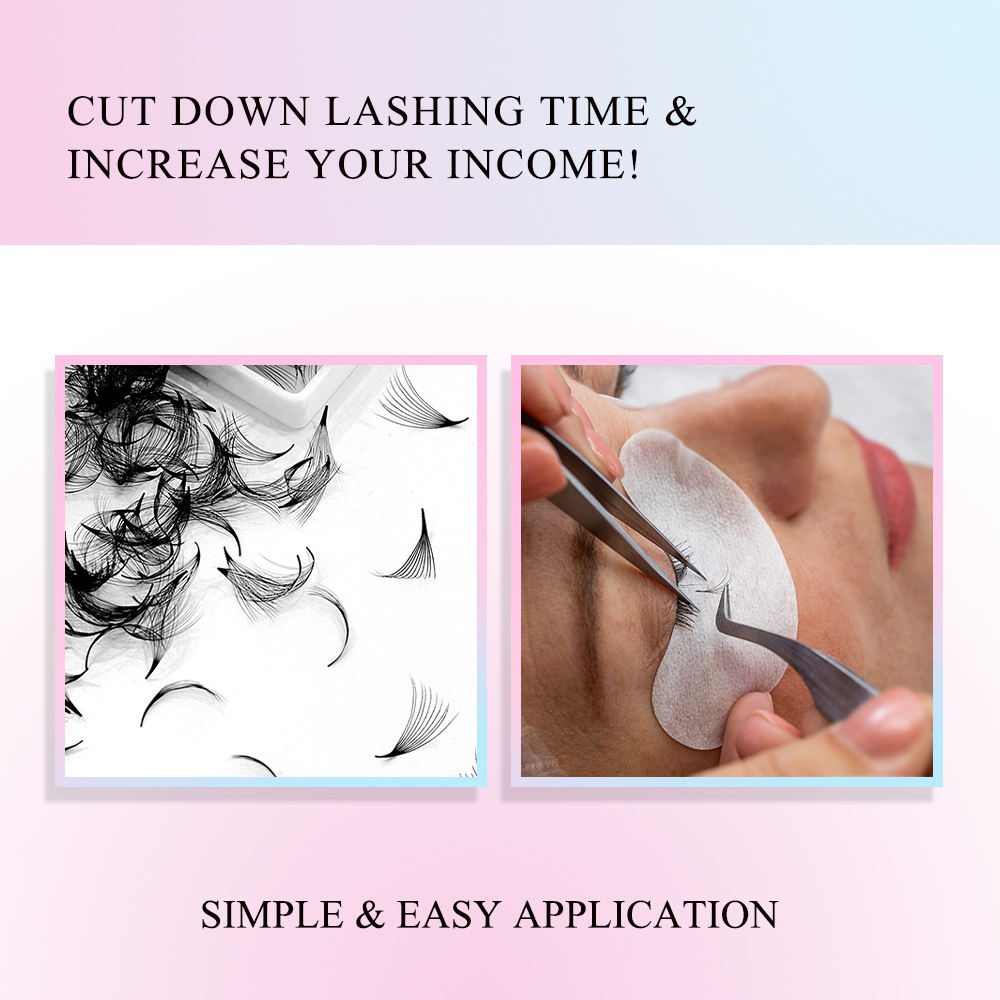 Premade fans are already fanned and ready to apply, you don’t have to spend time making fans. This speeds up the application process and improve your lashing skills, make more lash sets and profits.