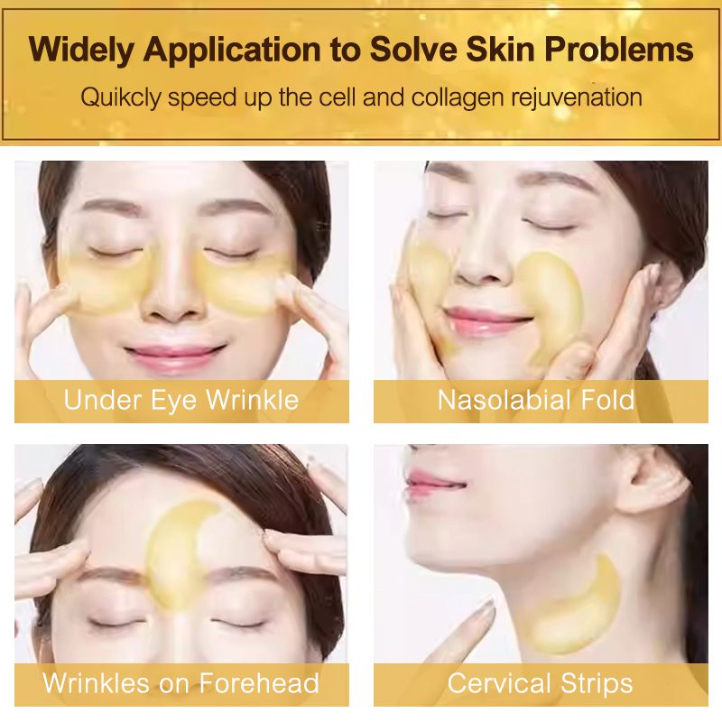 The pure gold Collagen eye mask can effectively relieves chronic fatigue and diminishes the formation of fine lines, wrinkles, crow-feet lines around the eye area, minimizing eye-bags and fading dark circles remarkably. Collagen synthesis is activated due to better cellular metabolism and blood circulation around the eye tissues, improves elasticity and firmness, bringing you a youthful and radiant pair of alluring eyes.