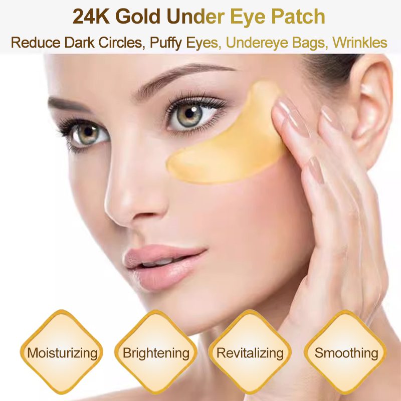 The gold eye mask is combination of 24K gold, hyaluronic acid, vitamins and grape seed oil to deeply hydrate and glow under eye areas. It improves the appearance of skin, visibly brighten eyes, reduce dark circles, fine lines and wrinkles. The vegan and soft ingredients intensely moisturize and hydrate your skin leaving your skin feeling refreshed and smooth.