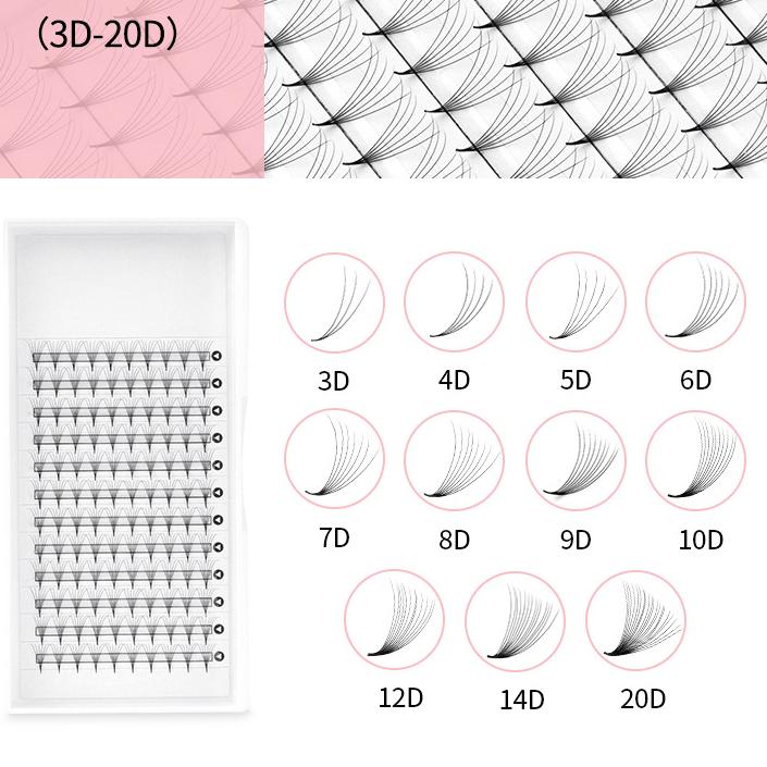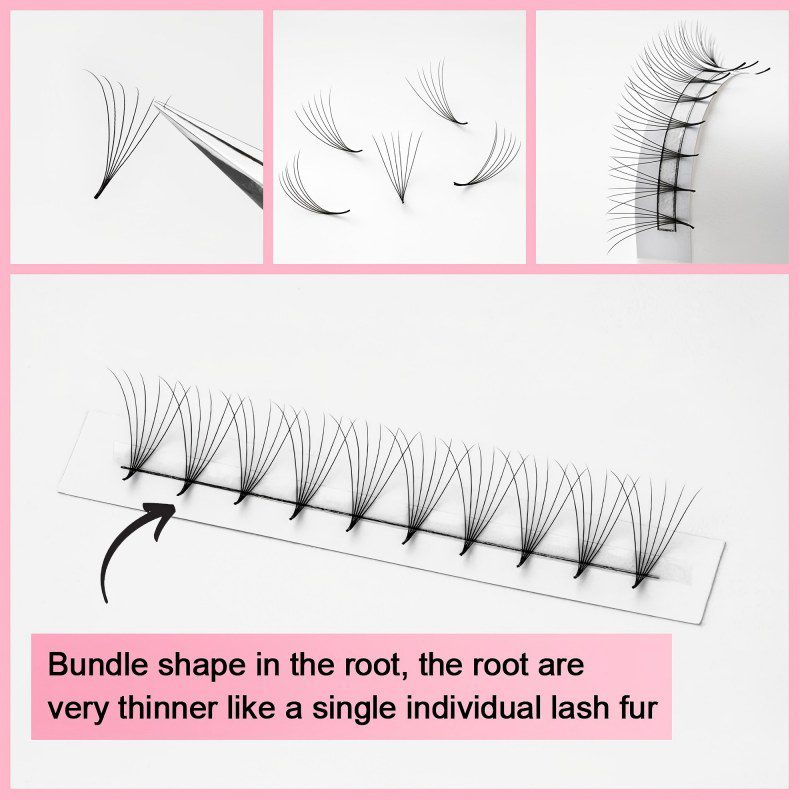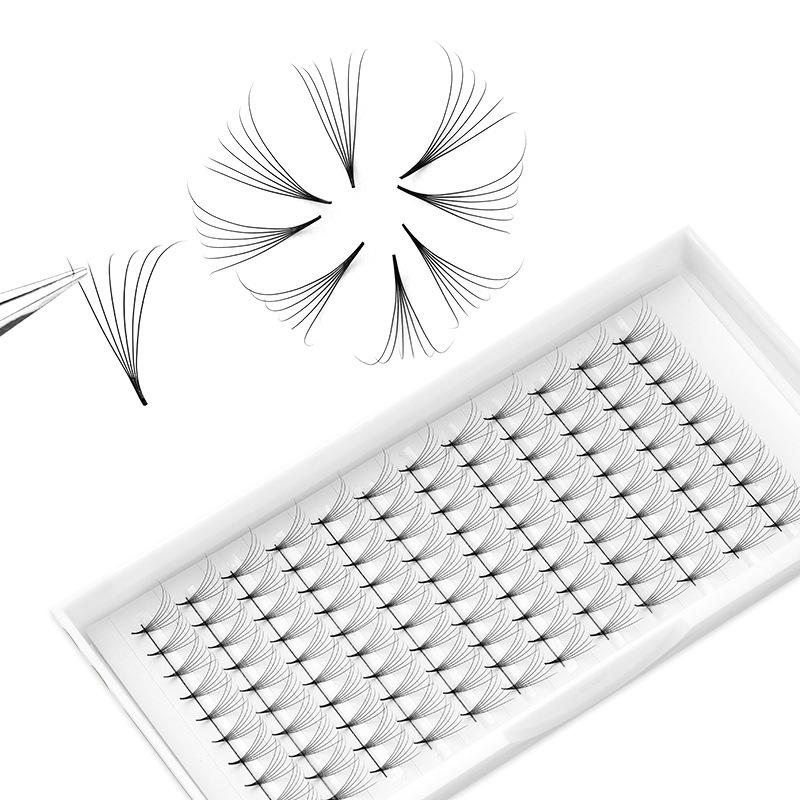 The new premade volume fans have a super thin base to apply on natural lashes safely and effortlessly. Made by the high quality synthetic fiber, the lashes are perfect to fulfill gorgeous full volume lash set in short time. Don’t need to make handmade lash fans, the premade fans will speed lash application time a lot. Just simply gramde the promade fans from the lash tray, then apply to natural lashes easily. The fast application reduces time for both clients and lash artists.