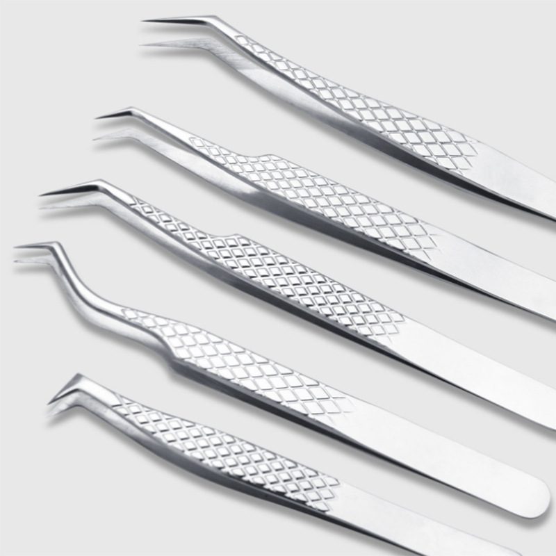 The tweezers are available in different tips for choosing. Every lash artist can find the perfect lash tweezers here. Different tips for isolation, picking up lashes, creating handmade volume fans. The silver tweezers make lash application extremely easily.