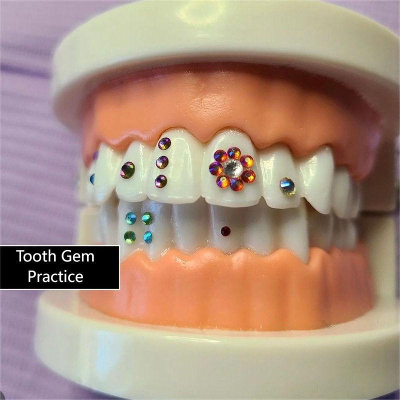 The practice model is easy to use and practice tooth gem application crystal and designs. show your customers the crystals that you have or the possibilities with toothgems. A perfect display for your shiny bright crystals.